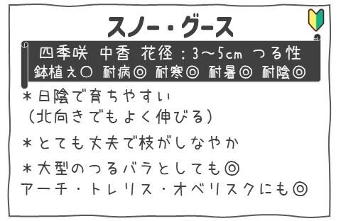 優雅な白花と心地よい香りを体験したい方にぜひお勧めしたい、スノー・グースです。