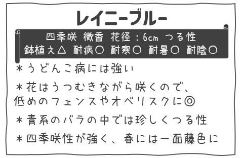 心を惹きつける優雅な青紫色と繊細な香りが特徴のバラ苗、レイニーブルーです!