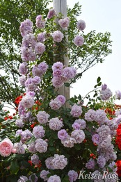 ※つる性のバラとは枝が長く伸びる性質のバラです。アサガオのようにつるが自分で絡みついて登っていくのではなく、枝が長く伸びるだけなので、アーチやオベリスクなどの構造物に人の手で誘引してあげる必要があります。立体的な景観を楽しむのにお勧めです。