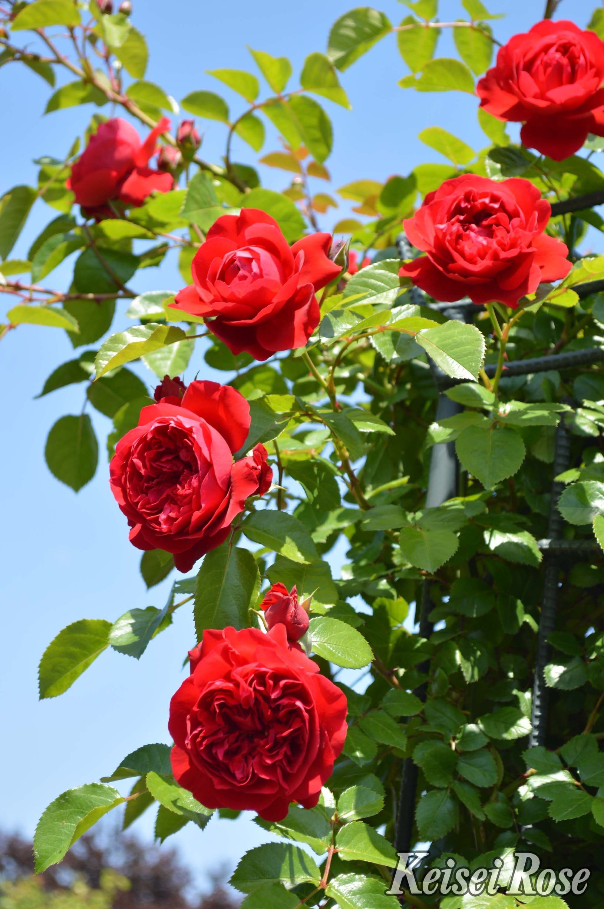 ※つる性のバラとは枝が長く伸びる性質のバラです。アサガオのようにつるが自分で絡みついて登っていくのではなく、枝が長く伸びるだけなので、アーチやオベリスクなどの構造物に人の手で誘引してあげる必要があります。立体的な景観を楽しむのにお勧めです。