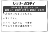 この「ジョリーメロデイ」は、可憐な花弁の形状が際立ち、あなたの庭や鉢植えに特別な魅力をもたらします。春から秋にかけて、次々と咲くその美しい花は、見る人々の心に深い感動を与え、特別な瞬間を演出します。