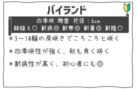 心を惹きつける美しいデザインと楽しげな色合いが特徴のバラ苗、バイランドです!