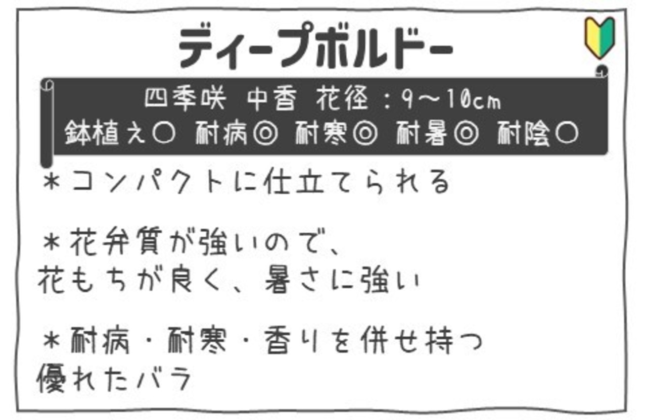心を惹きつける深みのある色合いとエレガントなフォルムが特徴のバラ苗、ディープボルドーです!