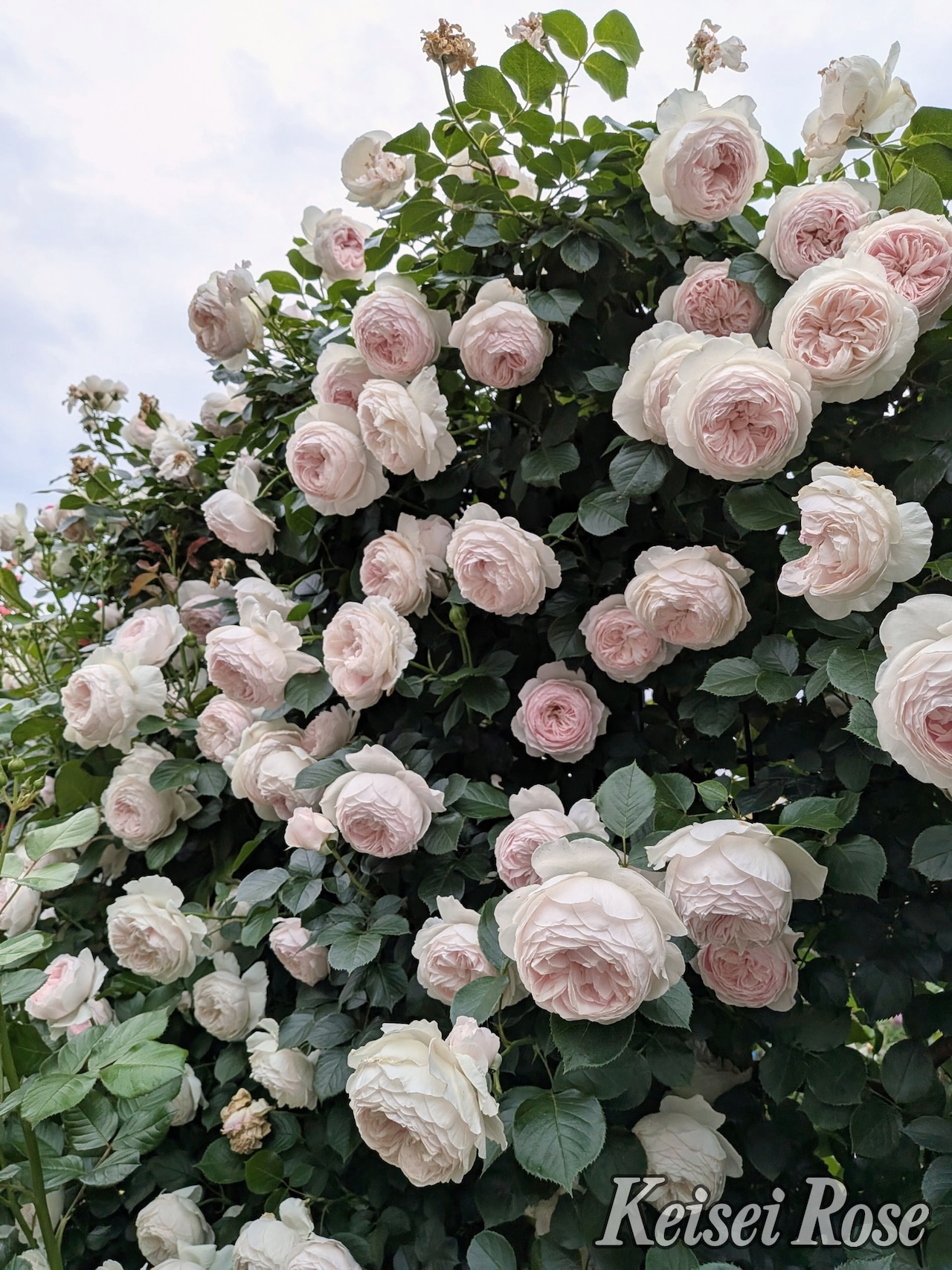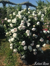 ※つる性のバラとは枝が長く伸びる性質のバラです。アサガオのようにつるが自分で絡みついて登っていくのではなく、枝が長く伸びるだけなので、アーチやオベリスクなどの構造物に人の手で誘引してあげる必要があります。立体的な景観を楽しむのにお勧めです。
