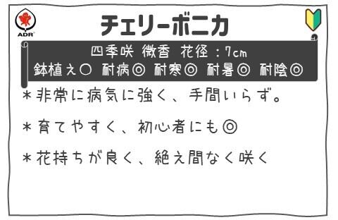心を惹きつける可愛らしい桃色の花弁と優美な姿が特徴のバラ苗、チェリーボニカです!