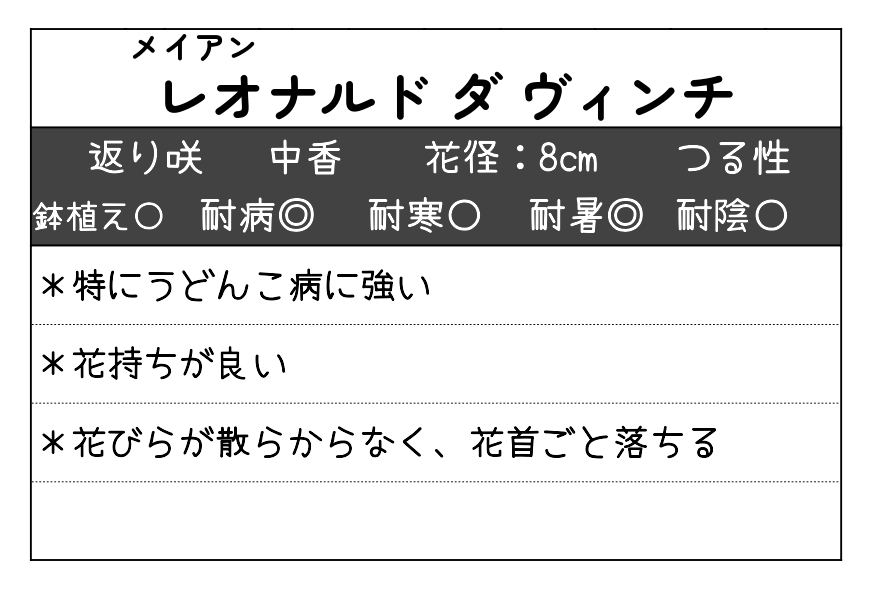 濃く鮮やかなローズピンク色と、整ったロゼット咲きの花形が美しい「レオナルド ダ ヴィンチ」。
