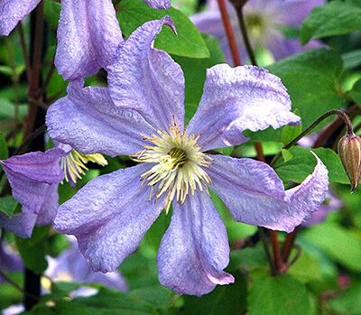 耐寒性があり、日向〜半日陰まで対応する実用性の高いつる性クレマチスです。