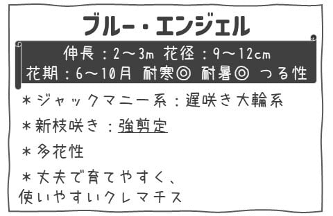 澄んだブルー〜ライトブルーの大輪花が空を思わせるように咲き誇る、人気のクレマチス「ブルー・エンジェル」。