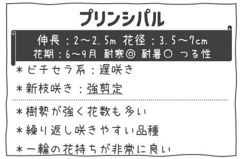 「プリンシパル」は、花形が整い、すっきりとした印象の花姿が魅力のクレマチスです。
