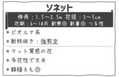 「ソネット」は、透明感のある青紫〜ライラック色の小輪~中輪花(約3〜5cm)が魅力のクレマチスです。
