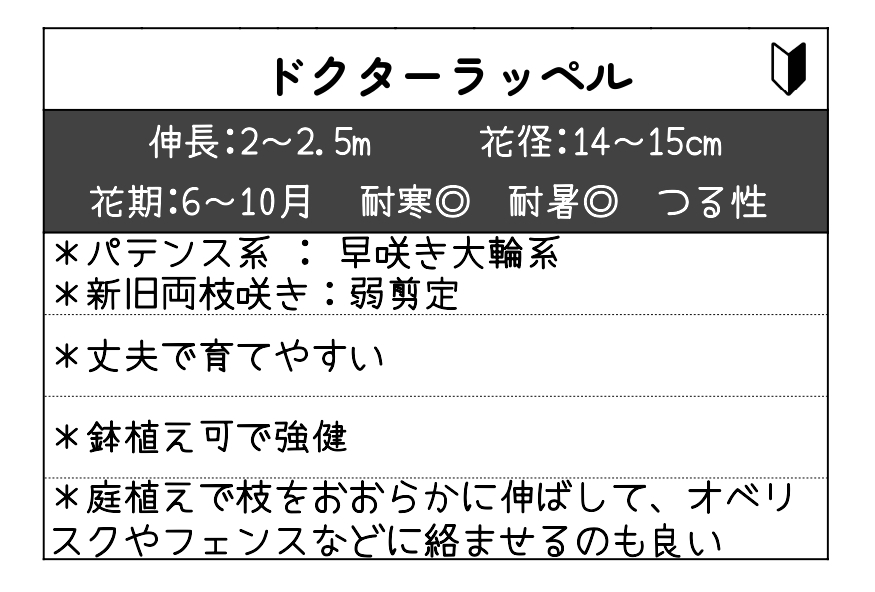 「ドクターラッペル」は、濃い赤〜ワイン系の大輪花(約14〜15cm)が目を引く人気のクレマチスです。