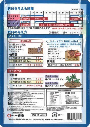●臭いが少なく、まきやすい粒状タイプの肥料。